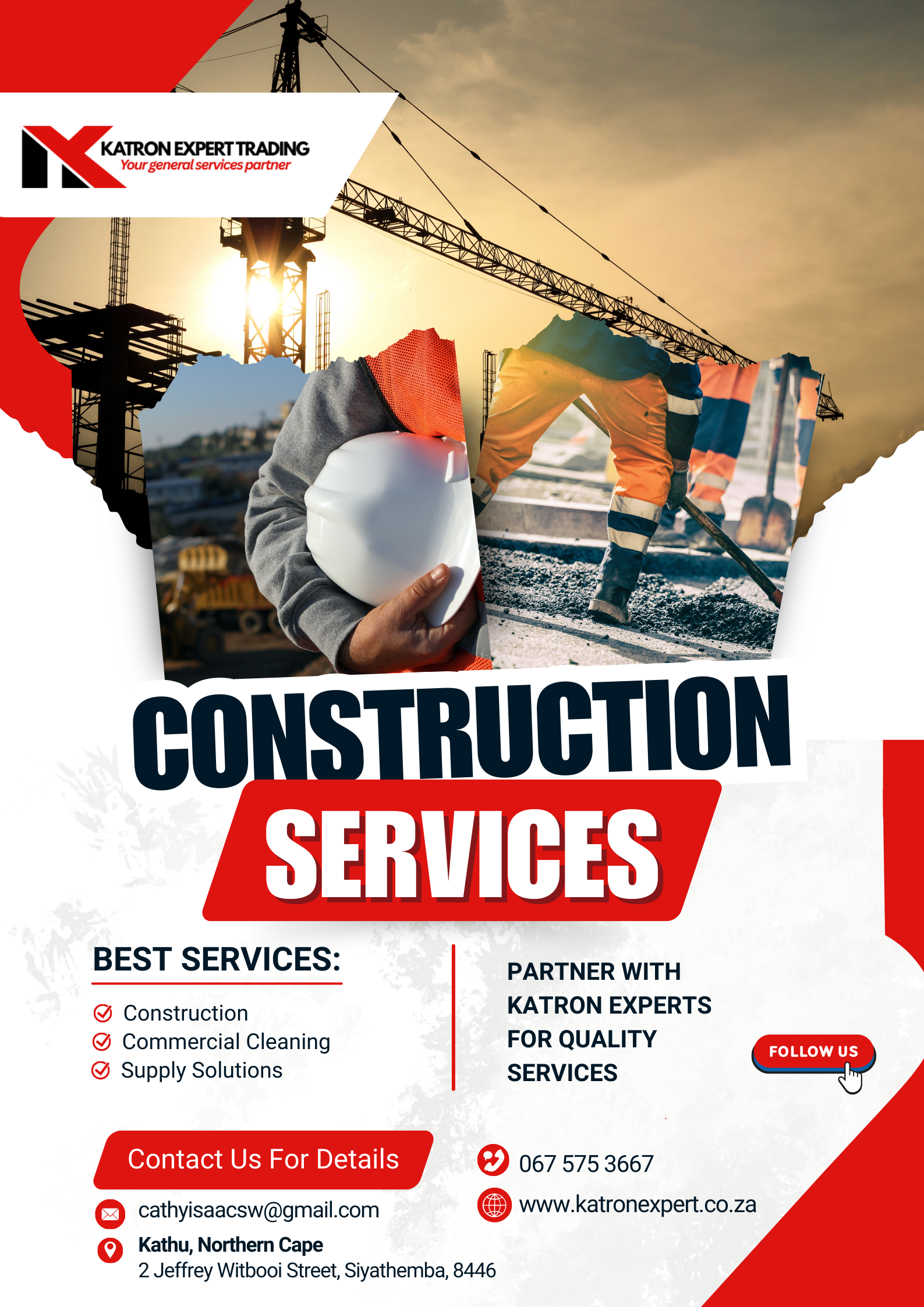 Katron Expert Trading (Pty) Ltd is a 100% black woman-owned company based in Kathu, Northern Cape. Since 2014, we’ve delivered excellence in construction, catering, supply, and cleaning services. Rooted in community empowerment and driven by quality, we proudly hold a Level 1 BBBEE status and a strong reputation for integrity and reliability.